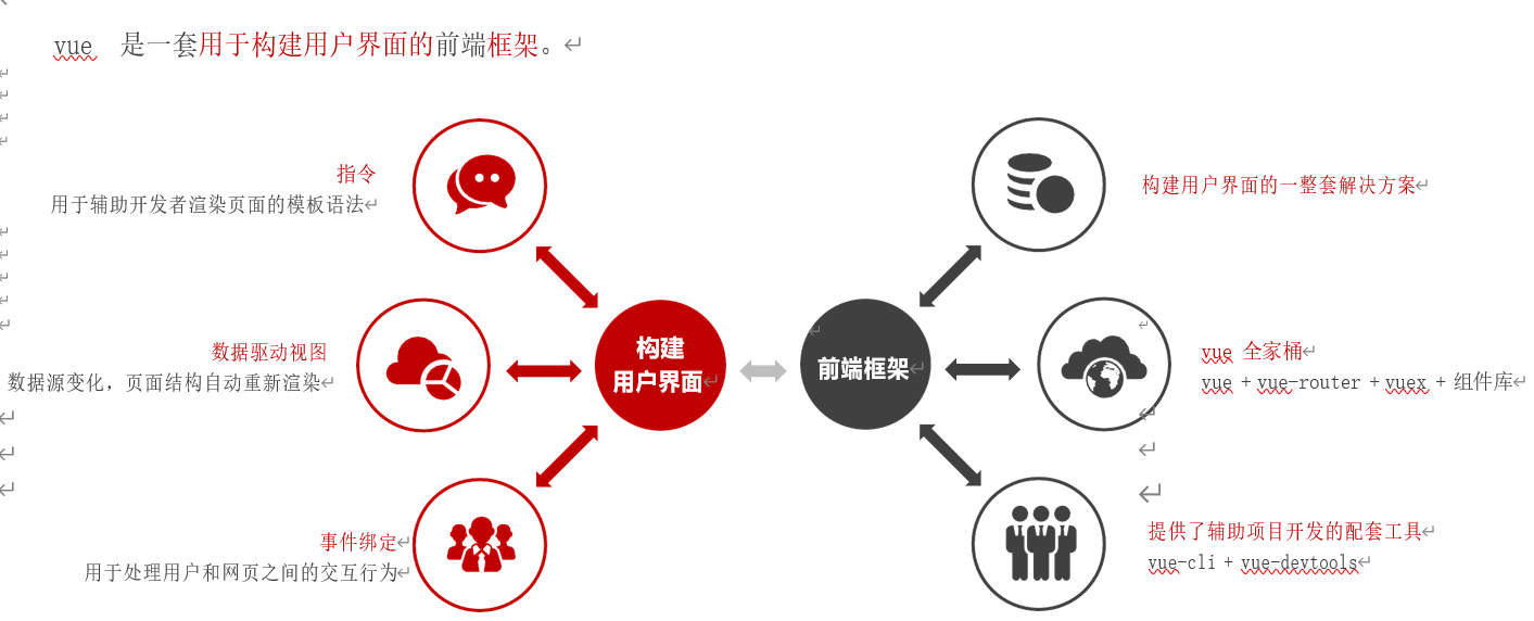 官方给 vue 的定位是前端框架,因为它提供了构建用户界面的一整套解决方案(俗称 vue 全家桶):