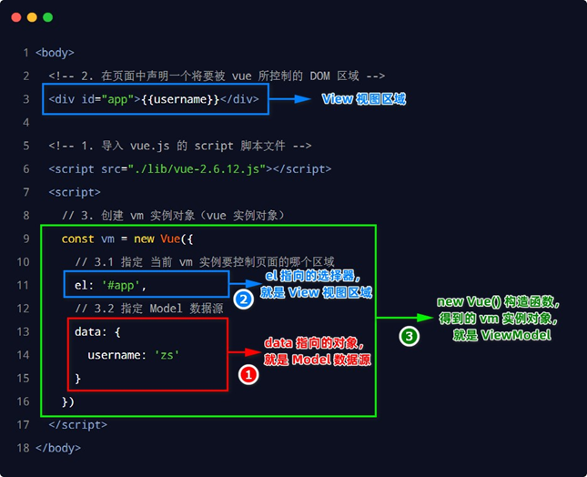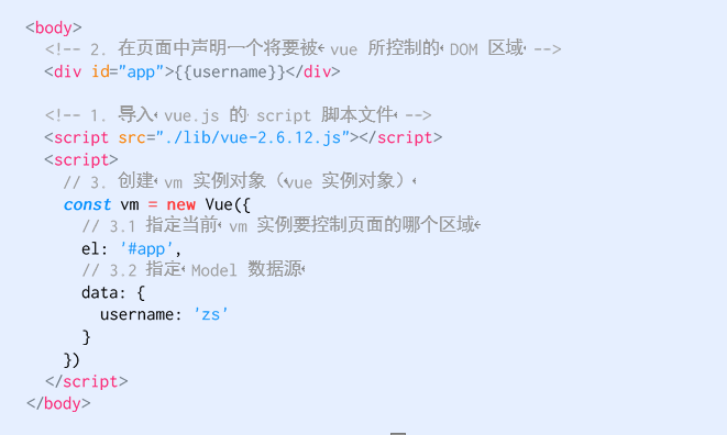 - 在页面中声明一个将要被 vue 所控制的 DOM 区域