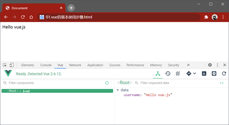 在浏览器中访问一个使用了 vue 的页面,打开浏览器的开发者工具,切换到 Vue 面板,即可使用 vue-devtools