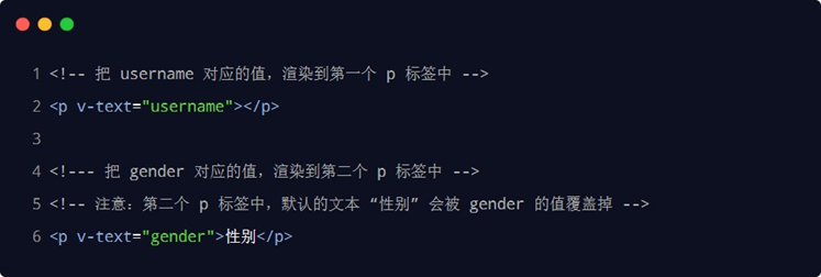 注意: v-text 指令会覆盖元素内默认的值。