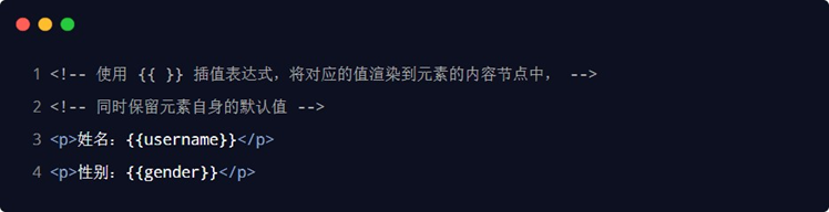 内容渲染指令用来辅助开发者渲染 DOM 元素的文本内容。常用的内容渲染指令有如下 3 个: