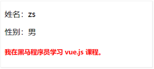 注意:相对于 v-text 指令来说,插值表达式在开发中更常用一些!因为它不会覆盖元素中默认的文本内容。