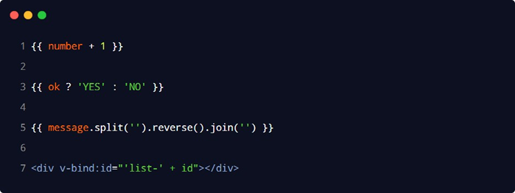 在 vue 提供的模板渲染语法中,除了支持绑定简单的数据值之外,还支持 Javascript 表达式的运算,例如: