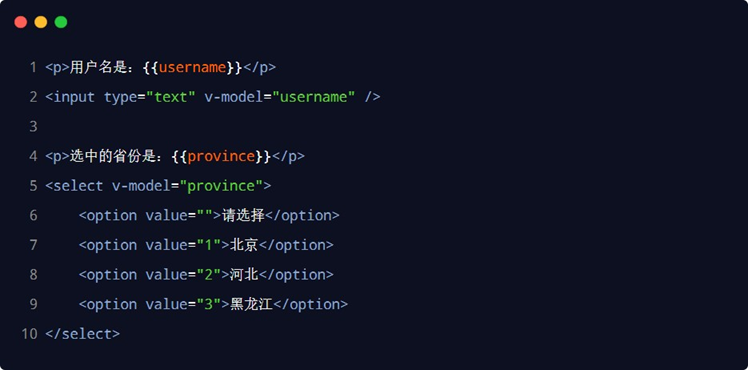 好处:开发者不再需要手动操作 DOM 元素,来获取表单元素最新的值!