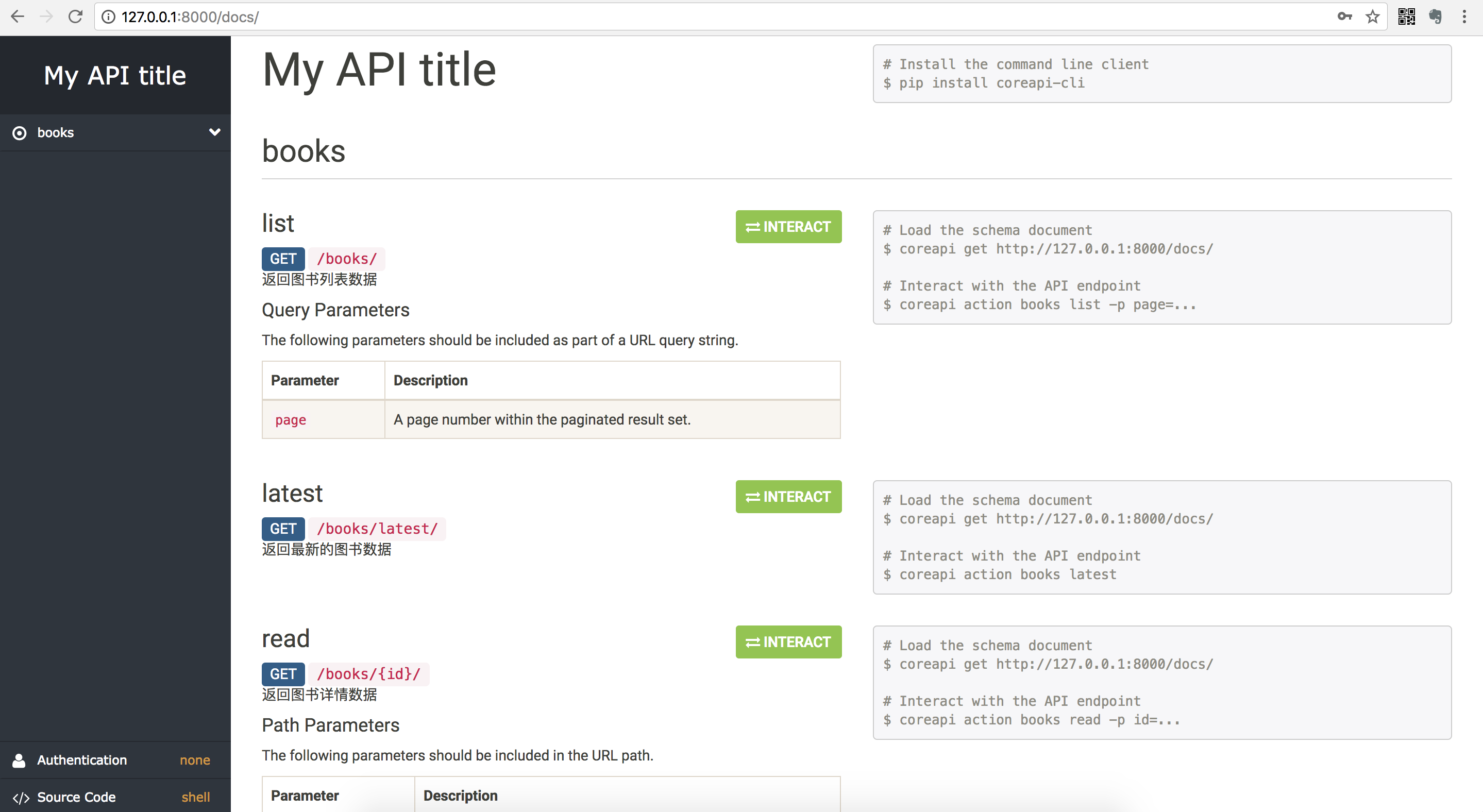 path('docs/', include_docs_urls(title='站点页面标题')) | |